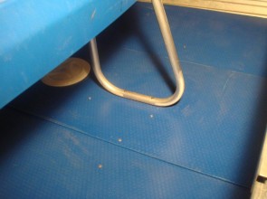 Piecus gadus vecai Buster laivai bija pienācis laiks atjaunot grīdu – oriģinālais brūnais saplāksnis bija nolietojies un vairs nepildīja savu funkciju ne vizuāli, ne praktiski. Jaunajam grīdas segumam tika izvēlēts “Riga Heksa Plus”, kam piemīt slīdi mazinošas īpašības un ir piemērots staigāšanai pa to ar basām kājām – ideāli laivas grīdai!